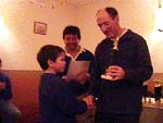Here is one of the younger members of the club receiving a trophy from the local champion rally driver Gwyndaf Evans. |